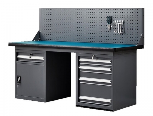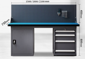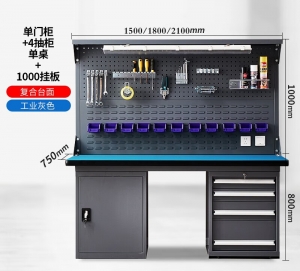 • 重型防静电工作台单门+4抽柜+单挂板