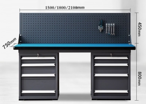 • 重型防静电工作台1斗1门+4抽柜+双挂板