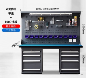 • 重型防静电工作台双4抽柜+单挂板