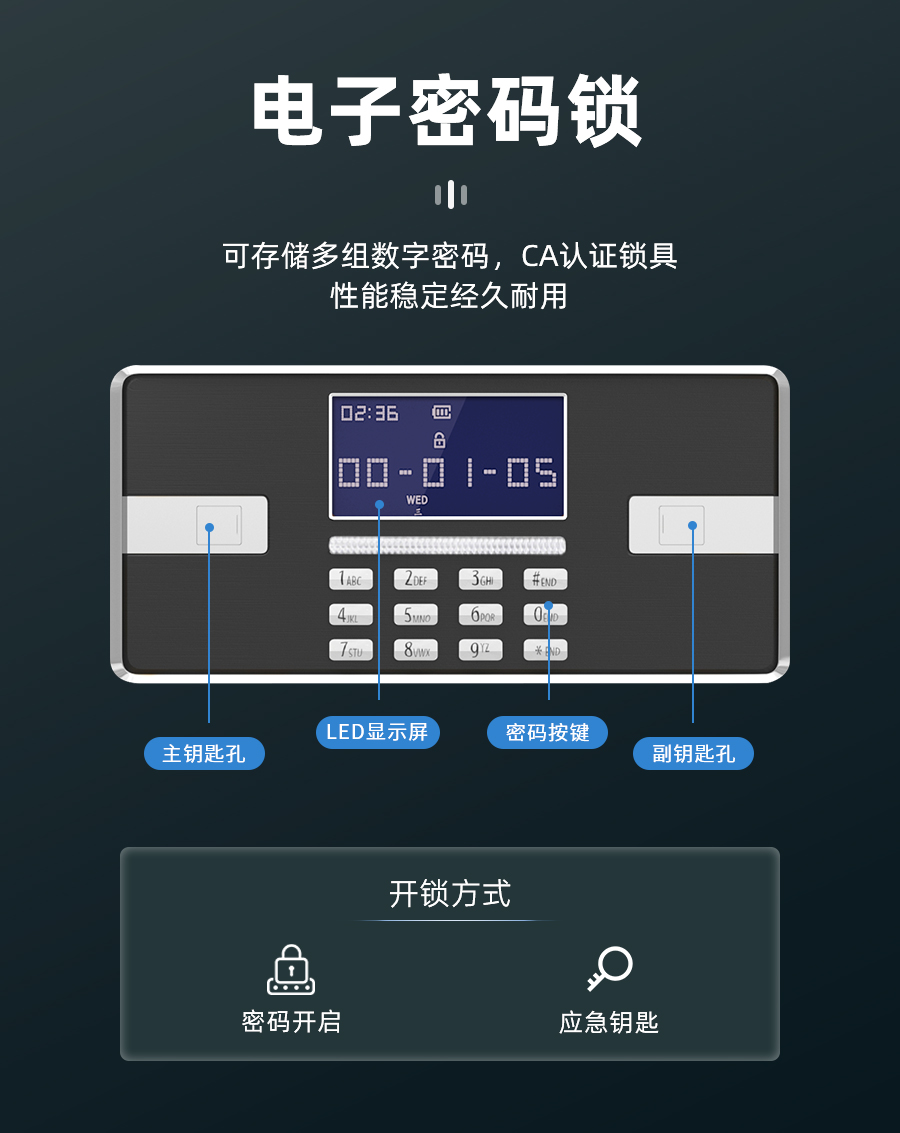 产品名称:通门带抽保密柜电子密码锁