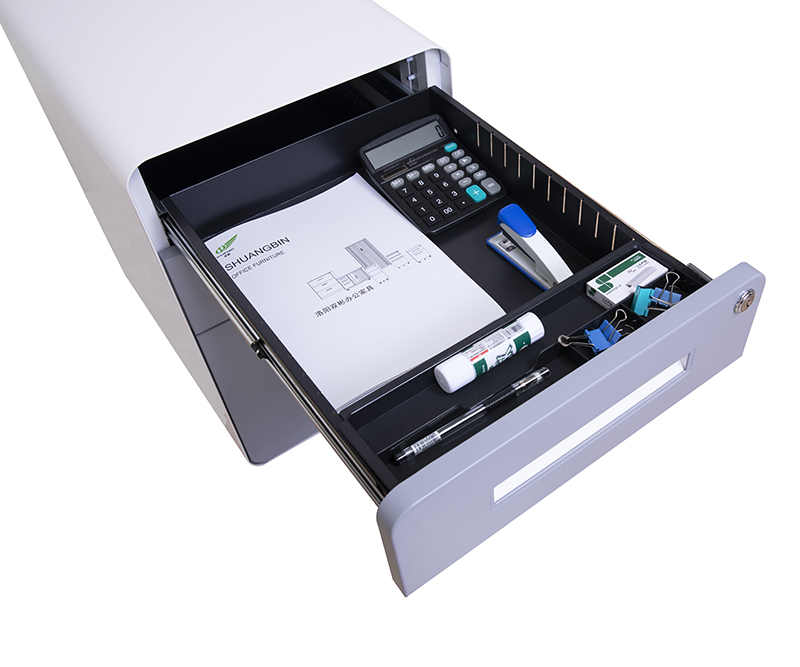 圆弧灰面板白扣手活动柜