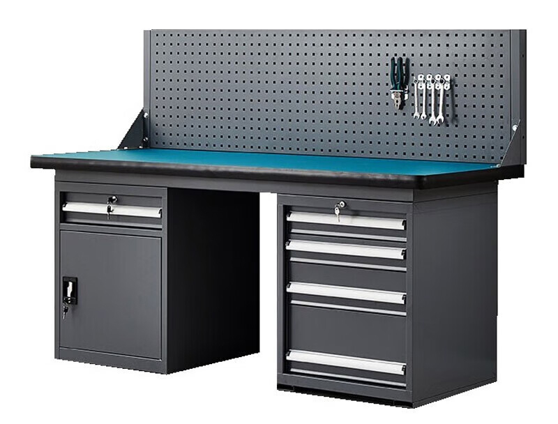 重型防静电工作台1斗1门+4抽柜+单挂板